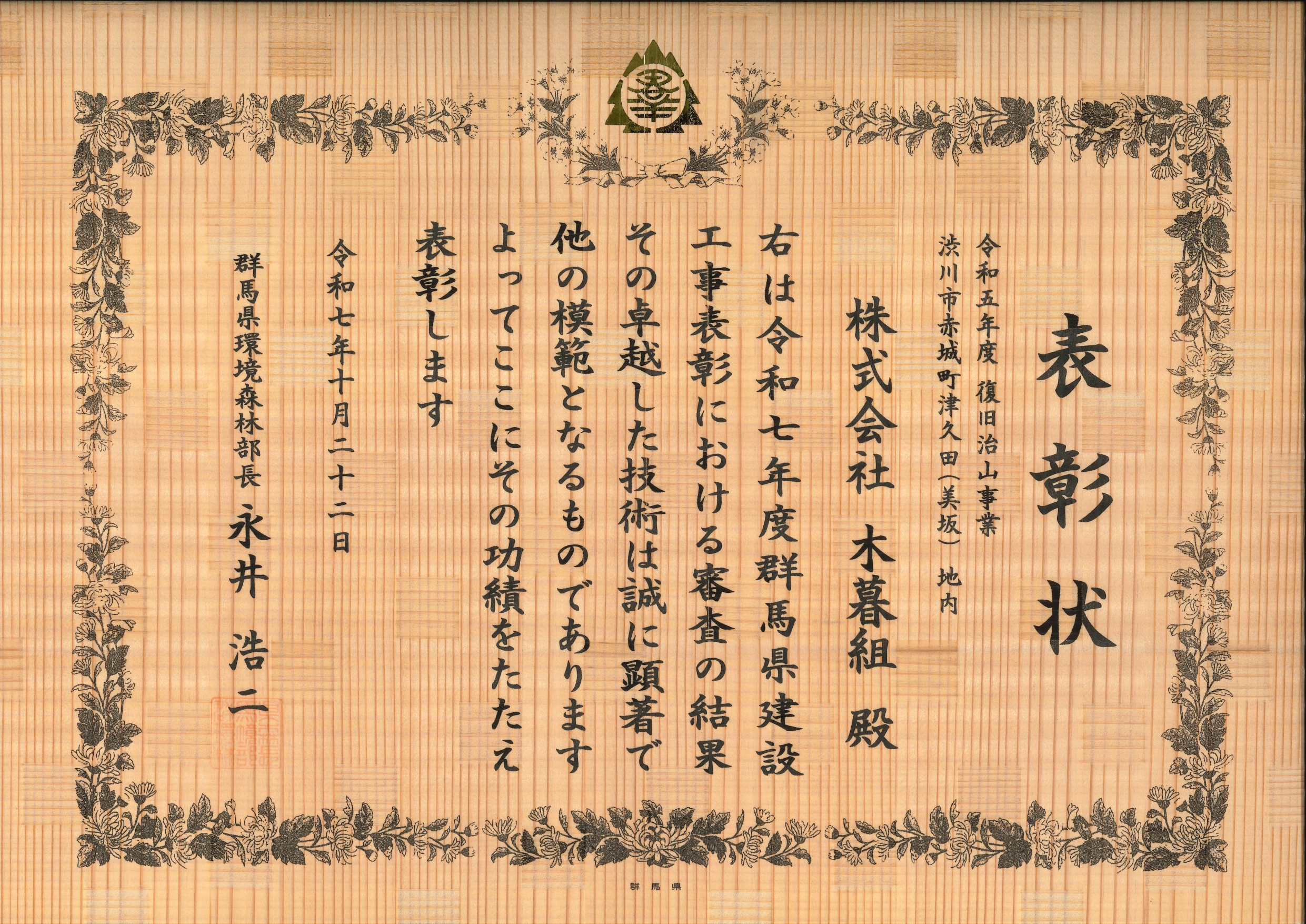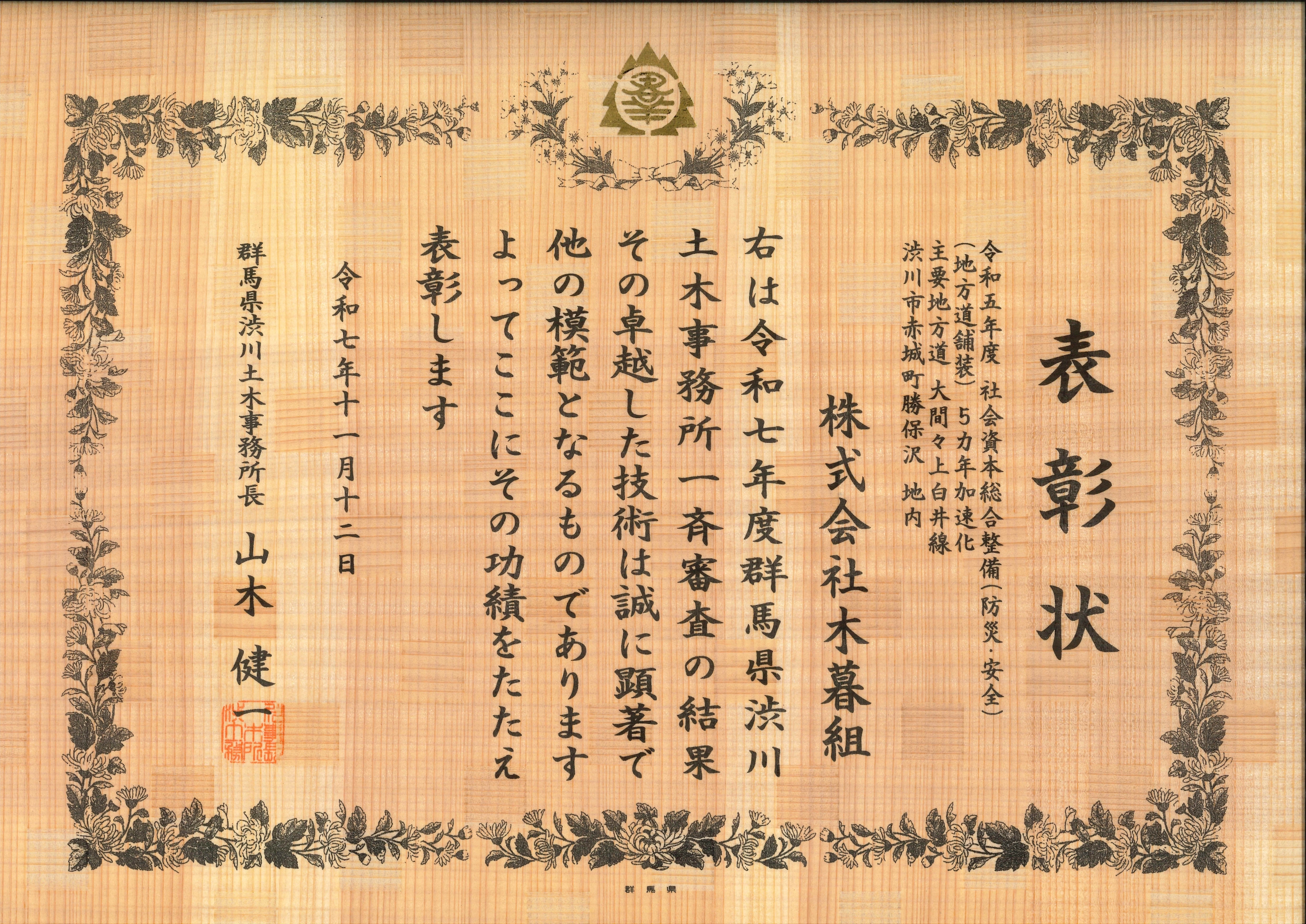 【2025年12月】令和7年度 優良工事表彰を頂きました